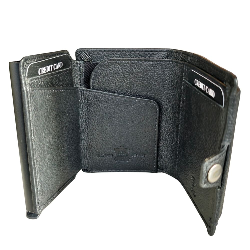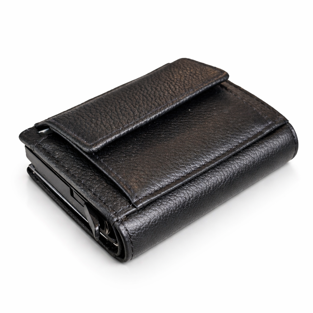 Premium Smart Wallet aus Echtleder – RFID-Schutz & Pop-Up Kartenetui (Schwarz)Premium Smart Wallet aus Echtleder – RFID-Schutz & Pop-Up Kartenetui (Schwarz)