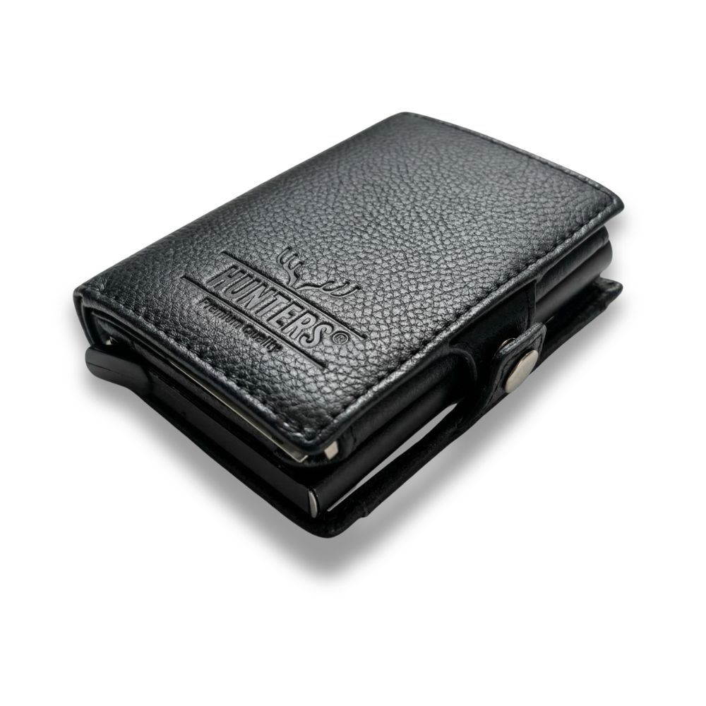 Premium Qualität trifft auf smartes Design Entdecken Sie das ultimative Accessoire für den modernen Alltag. Unser HUNTERS Smart Wallet im eleganten Schwarz ist aus feinstem Echtleder gefertigt („German Design“) und bietet eine angenehme Haptik sowie extreme Langlebigkeit.